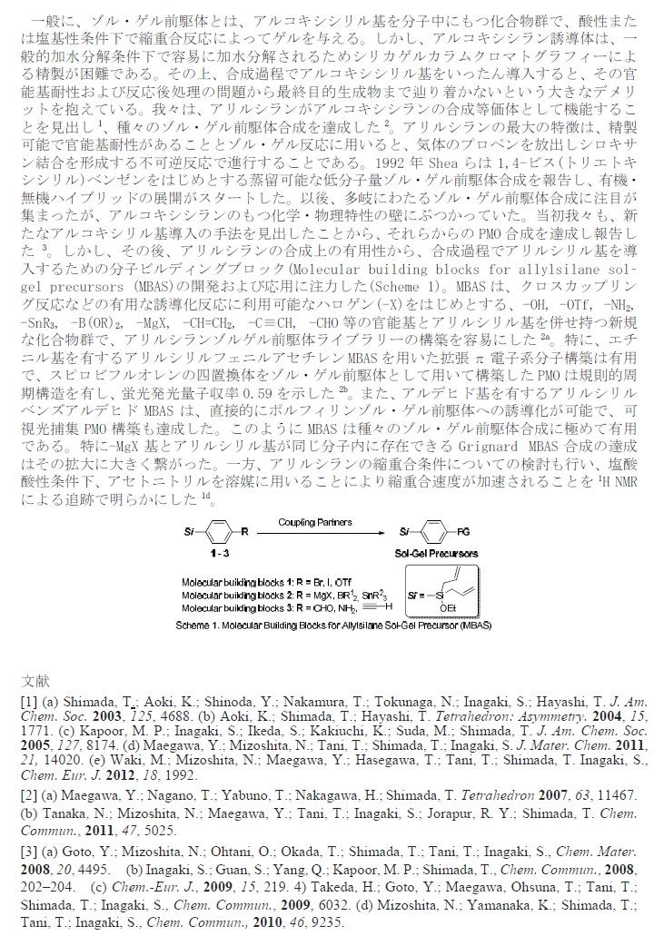 戦力的創造研究推進事業 CREST、(平成19年度~24年度)研究領域 「ナノ界面技術の基盤構築」, 「有機シリカハイブリッド材料のナノ制御構造と機能創出」