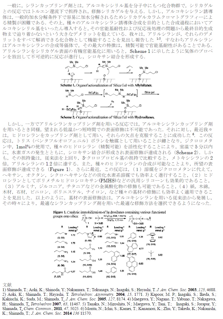 1. 科学研究費補助金 基盤研究(B) 「ヒドリドシリカモノリス担体中での金属・合金ナノ粒子のその場作成と触媒反応への応用」(平成26年度~28年度)